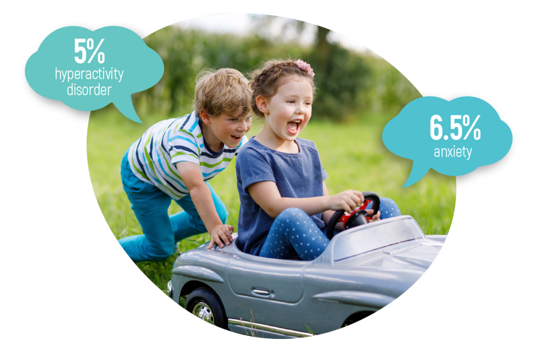Worldwide prevalence of attention – deficit hyperactivity disorder in children is 5% and anxiety 6.5%.